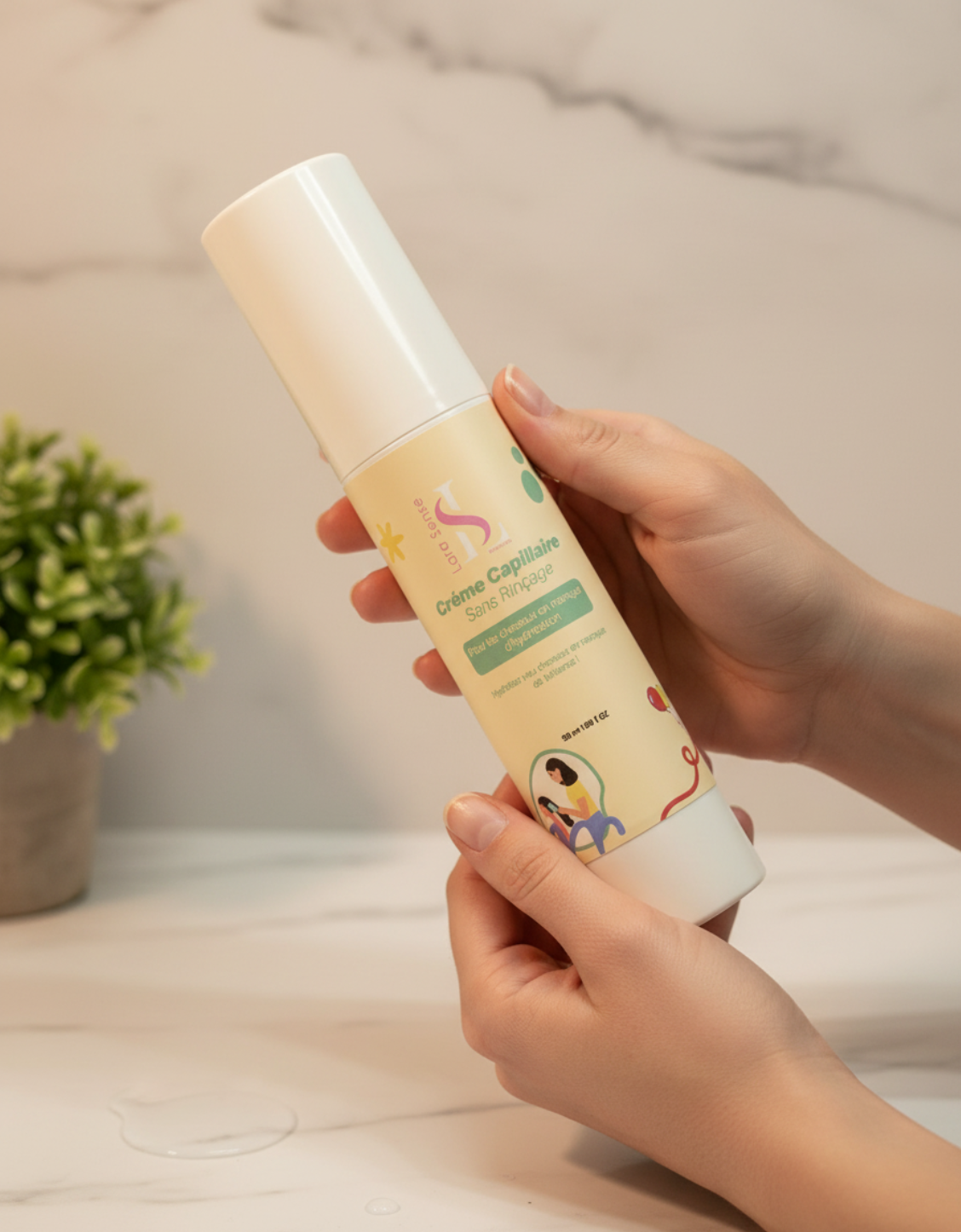 - Appliquez une petite quantité de crème sur cheveux humides ou secs.